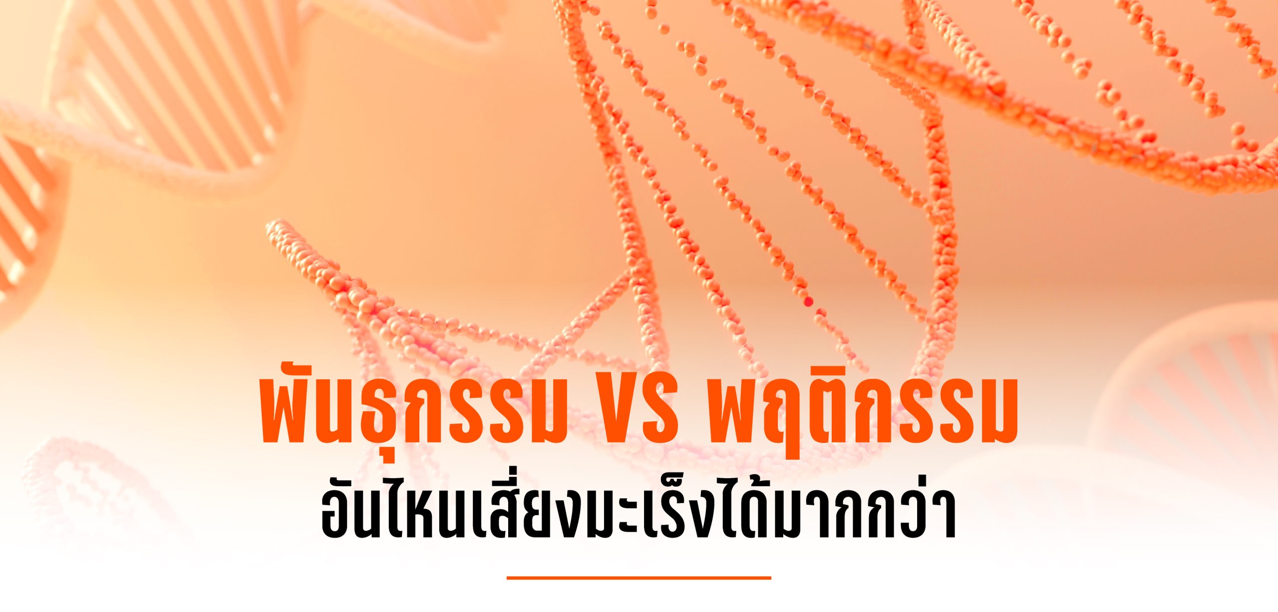 พันธุกรรมคือสิ่งที่เราได้มา แต่พฤตกรรมคือสิ่งที่เรา “เลือกได้” NFCR ย้ำถึงความสำคัญของวิถีชีวิตที่มีต่อการเกิดมะเร็งไว้อย่างชัดเจน คนที่มีพันธุกรรมเสี่ยงต่ำแต่มีพฤติกรรมสุขภาพไม่ดี เช่น สูบบุหรี่ ไม่ออกกำลังกาย หรือกินอาหารที่ไม่สมดุล มีโอกาสเป็นมะเร็งมากกว่าคนที่มีพันธุกรรมเสี่ยงสูงแต่มีพฤติกรรมที่ดีเสียอีก ในทางกลับกันคนที่มีพันธุกรรมเสี่ยงสูง แต่ใช้ชีวิตที่ดีต่อสุขภาพ เช่น ไม่สูบบุหรี่ ควบคุมน้ำหนัก และออกกำลังกายสม่ำเสมอ อัตราการเป็นมะเร็งจะลดลงเหลือเพียง 5.51 เปอร์เซ็นต์ในผู้ชาย และ 3.69 เปอร์เซ็นต์ในผู้หญิง พฤติกรรมที่จัดว่าเป็นตัวการสำคัญมีหลายอย่าง เช่น การสูบบุหรี่ซึ่งเกี่ยวข้องกับมะเร็งปอดและกล่องเสียง การดื่มแอลกอฮอล์ที่มีส่วนทำให้เกิดมะเร็งตับและมะเร็งเต้านม การมีน้ำหนักเกินที่สัมพันธ์กับมะเร็งมดลูก ลำไส้ใหญ่ และเต้านม รวมถึงการขาดการออกกำลังกาย หรือการบริโภคอาหารที่มีไขมันและน้ำตาลสูงแต่ขาดผักผลไม้ แม้แต่ความเครียดสะสม การนอนหลับไม่เพียงพอ ก็ล้วนส่งผลทางอ้อมต่อระบบภูมิคุ้มกันของร่างกายที่มีบทบาทสำคัญในการต่อสู้กับเซลล์ผิดปกติ
