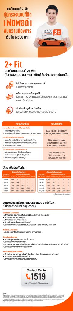 ประกันรถยนต์ 2+ฟิต เริ่มต้น 6,500 บาท