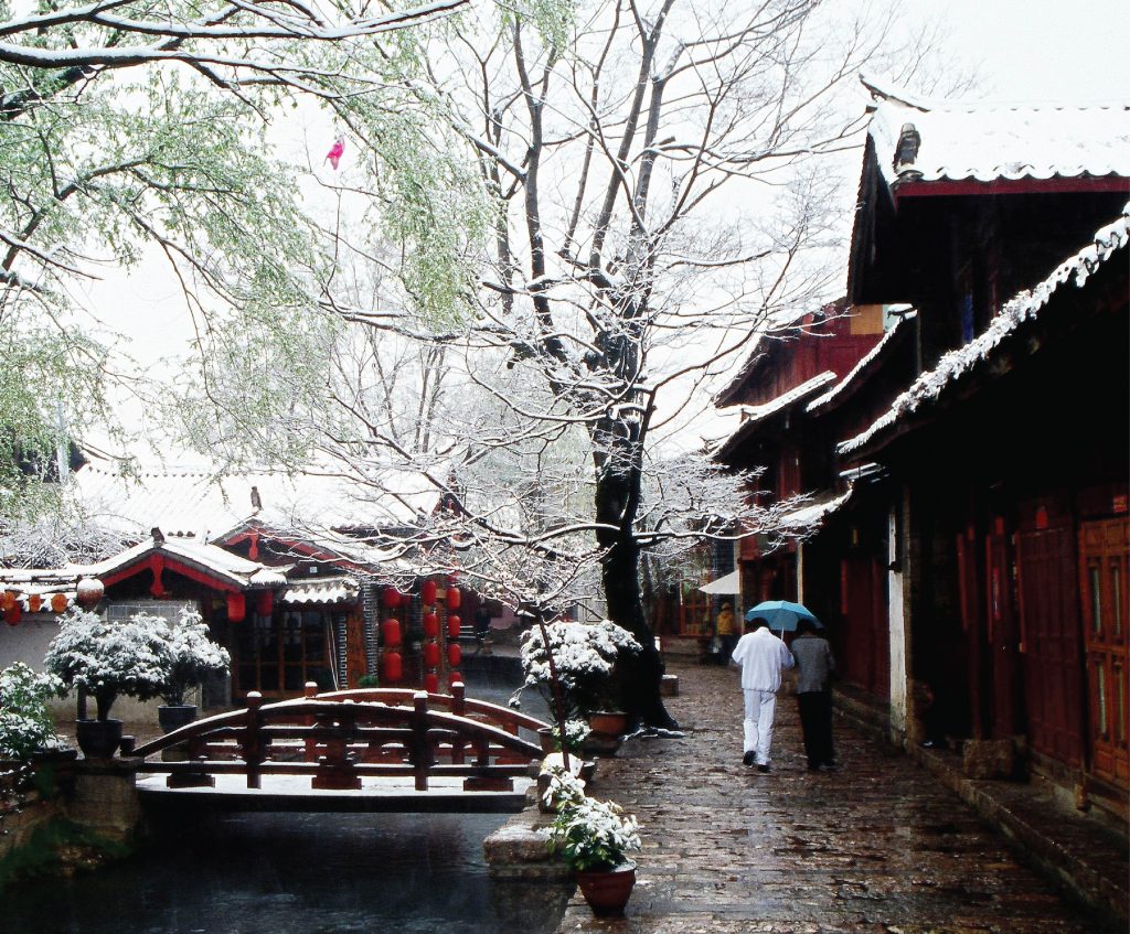 เมืองโบราณลี่เจียงในฤดูหนาวเป็นจุดหมายที่มีความงดงามของเมืองเก่า และสามารถสัมผัสประวัติศาสตร์และวัฒนธรรมของชาวหน่าซี เดินเล่นในตรอกซอกซอยที่ปกคลุมด้วยหิมะ ชมอาคารโบราณที่มีเอกลักษณ์ ร้านค้าท้องถิ่นและชาสมุนไพรที่ช่วยเพิ่มความอบอุ่น