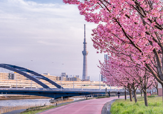 สวนสุมิดะตั้งอยู่ริมแม่น้ำสุมิดะใกล้โตเกียวสกายทรีความพิเศษของที่นี่ คือ สามารถชมซากุระพร้อมวิวแม่น้ำและหอคอยโตเกียวสกายทรีที่ตั้งสูงตระหง่านไปได้พร้อมกัน ทำให้ได้ภาพถ่ายที่มีมิติและความสวยงามที่ไม่ซ้ำใคร อีกทั้งยังสามารถร่องเรือในแม่น้ำเพื่อชมซากุระที่เรียงรายตลอดสองฝั่งน้ำเป็นการชมซากุระในอีกมุมมองที่แตกต่างออกไปด้วย