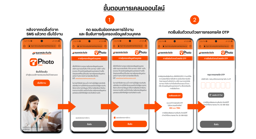 1. ลูกค้าโทรแจ้งเคลมที่เบอร์ 1519 จะมีเจ้าหน้าที่รับเรื่องและติดต่อกลับว่าสะดวกเคลมผ่านการถ่ายรูปหรือไม่ ถ้าสะดวกเจ้าหน้าที่จะส่งลิงก์ทาง SMS ให้ลูกค้า