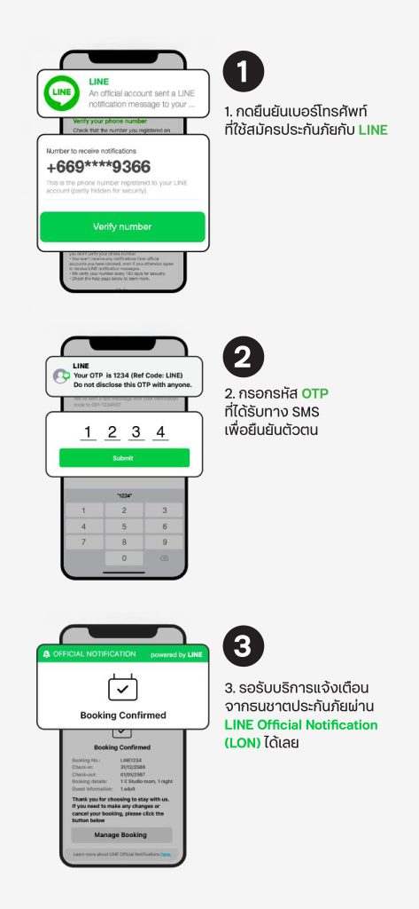 ทั้งนี้ หากลูกค้าเคยยืนยันตัวตนด้วยเบอร์โทรศัพท์ กับ Line Thailand แล้ว ลูกค้าไม่จำเป็นต้อง Verify เบอร์ในขั้นตอนนี้ และสามารถเปิดดูข้อความผ่าน LON จากธนชาตประกันภัยได้ทันที